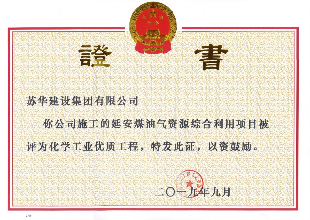 最近,我公司又獲得了由中國化工施工企業(yè)協(xié)會頒發(fā)的全國化學(xué)工業(yè)優(yōu)質(zhì)工程獎狀。陜西延長石油延安能源化工有限責(zé)任公司建設(shè)的延安煤油氣資源綜合利用項目熱動力站項目。由我蘇華建設(shè)集團(tuán)有限公司上海分公司承建。該項...
